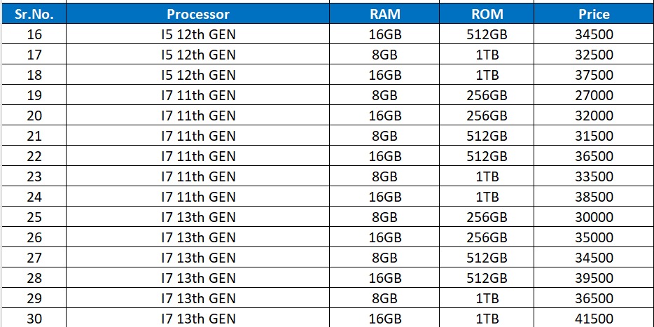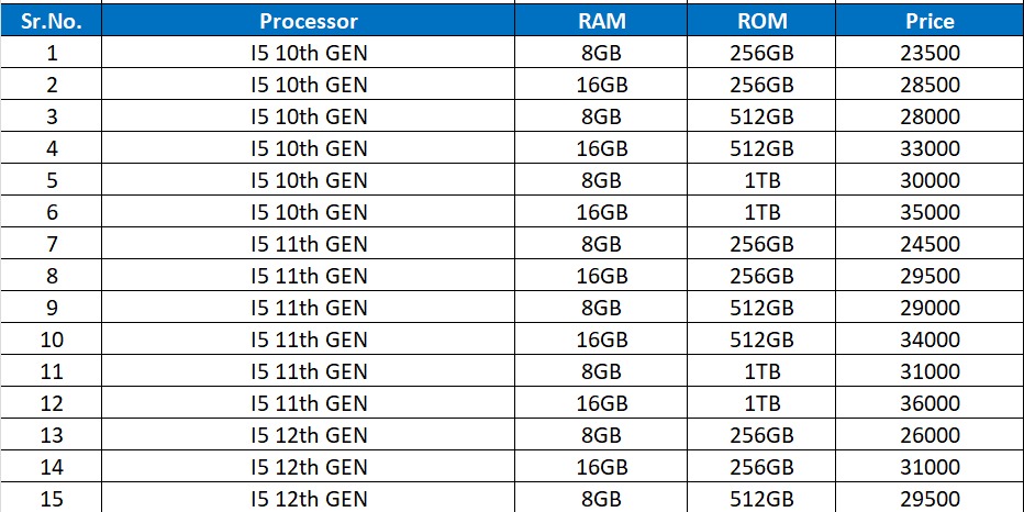 Powered by processors ranging from Intel® i5 6th GEN to i5 11th GEN, and i7 7th GEN to i7 10th GEN, ensuring robust and reliable performance.
